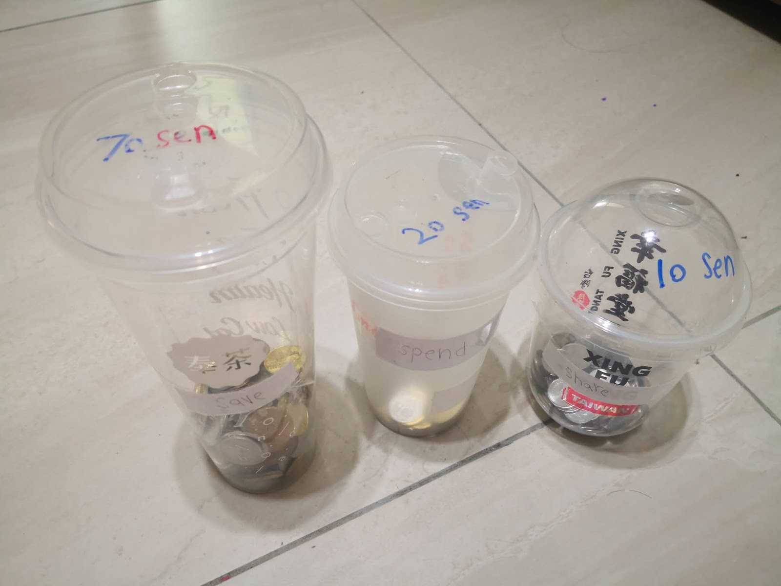 Money jars system, a way to teach kids money sense